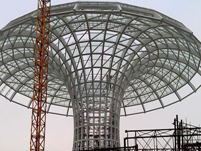 二、球形网架结构因其结构新颖,受力合理,自重轻、用钢量低等优点。如大型体育场馆球形玉溪螺栓球网架、公共场馆球形网架、电厂玉溪螺栓球网架、水泥工业球形网架、仓储物流球形网架、玉溪干煤棚工业球形网架、玉溪收费站玉溪加油站球形网架、展览中心、影剧院、商场、航站楼、候车厅、工厂玉溪车间、仓库、电视塔等球形螺栓球节点网架。国内球形网架结构主要分为:玉溪焊接球节点网架及螺栓球节点网架两种。螺栓球节点网架其构件工厂内加工量较大,现场安装便捷,适用于现场工期紧,玉溪施工条件、用电量受制约,网架形状复杂、玉溪杆件定位困难的异形结构。螺栓球节点球形网架系统基本由玉溪杆件、螺栓球、支撑支座等组成。按照节点形式可分为交叉玉溪桁架体系、四角锥体系、三角锥体系等。支撑方式多为固定支座支撑。对于大面积、大跨度及有特殊受力或伸缩要求的网架结构可采用橡胶支座、滑移支座、球铰支座等支撑形式,以满足结构自身的受力稳定、均衡,便于内力释放等设计要求。